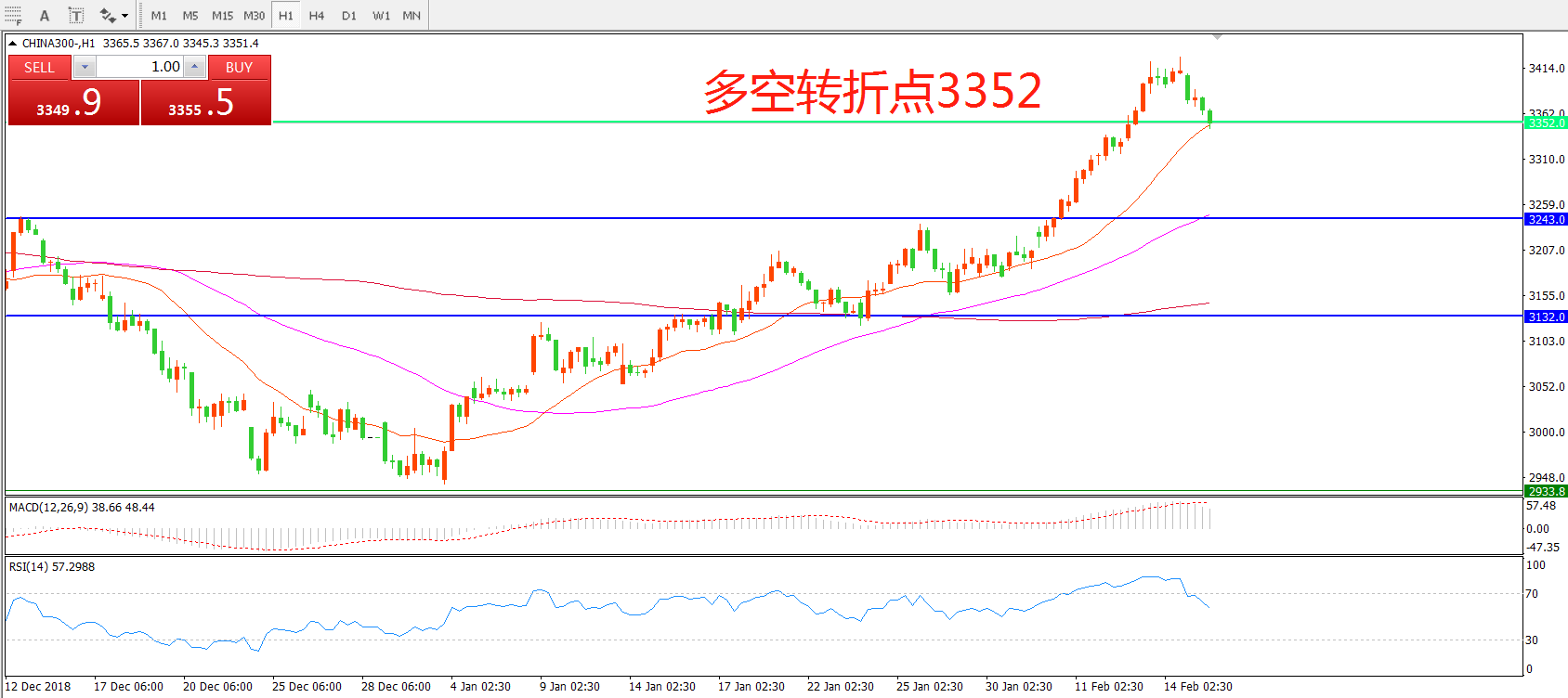 多空转折点:3352.00