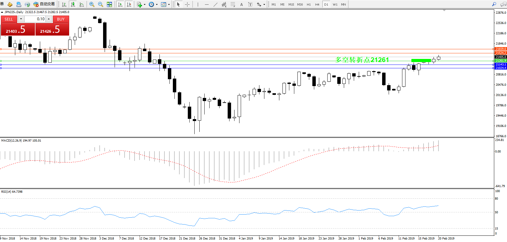 虽然目前中美贸易谈判市场预期乐观,但谈判目前还没有给出明确的结果。投资者还需要耐心等待。此外,美国和欧盟、日本的有关于汽车的贸易问题也在近期引发的市场关注,如果美欧贸易,或者美日贸易出现新的争论,那么这也会给市场风险情绪带来冲击。日经225指数涨0.57%,收于21,423.50点,为1217日来最高收位,受中美贸易协议乐观情绪提振,汽车等景气循环类股以及软银等权重股走高。