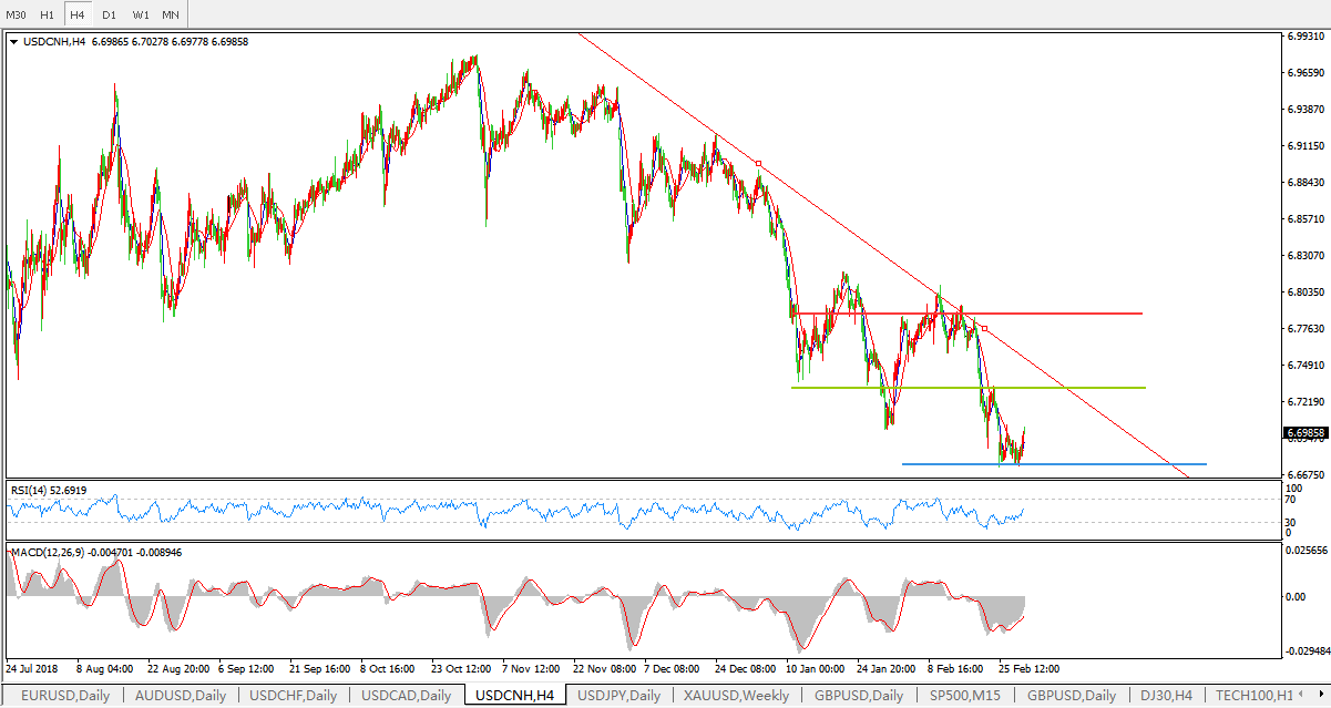 美元兑人民币USDCNH 4小时图: