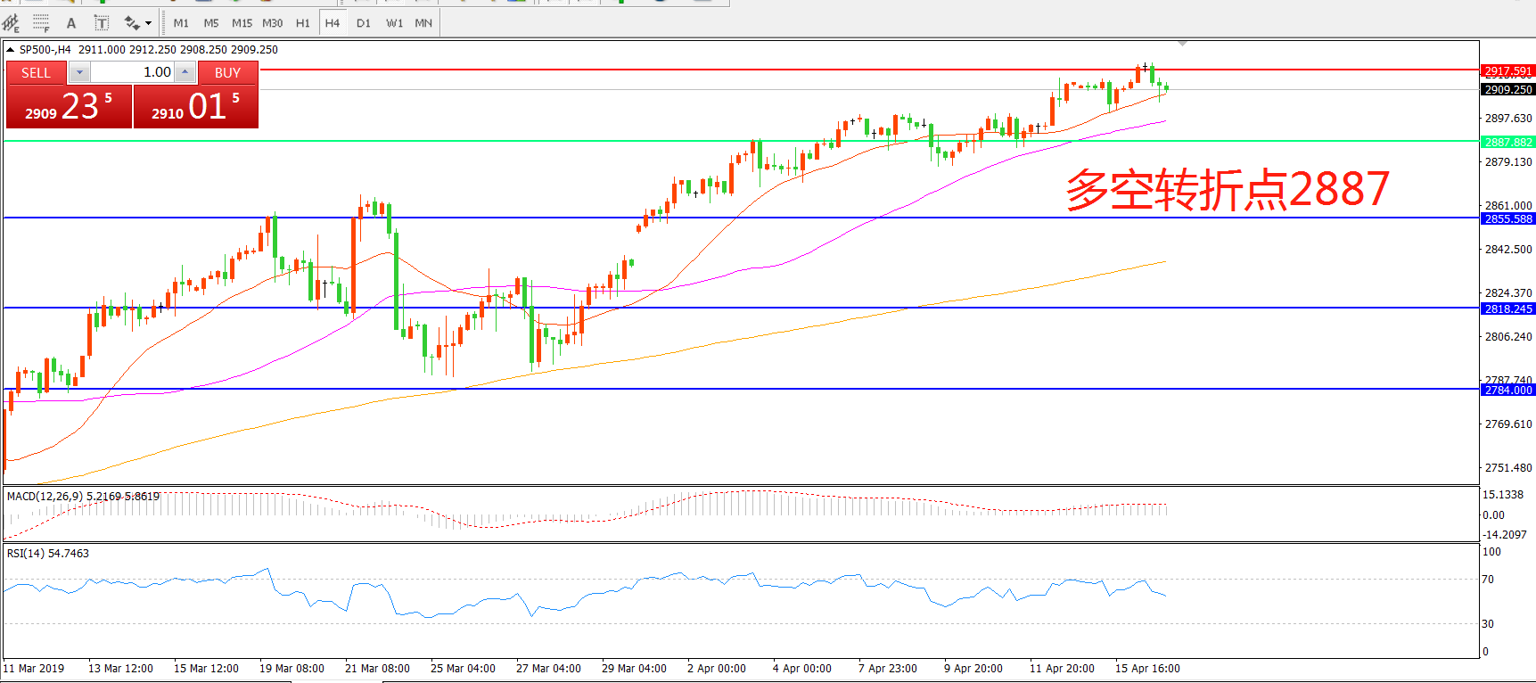 多空转折点:2887.00
