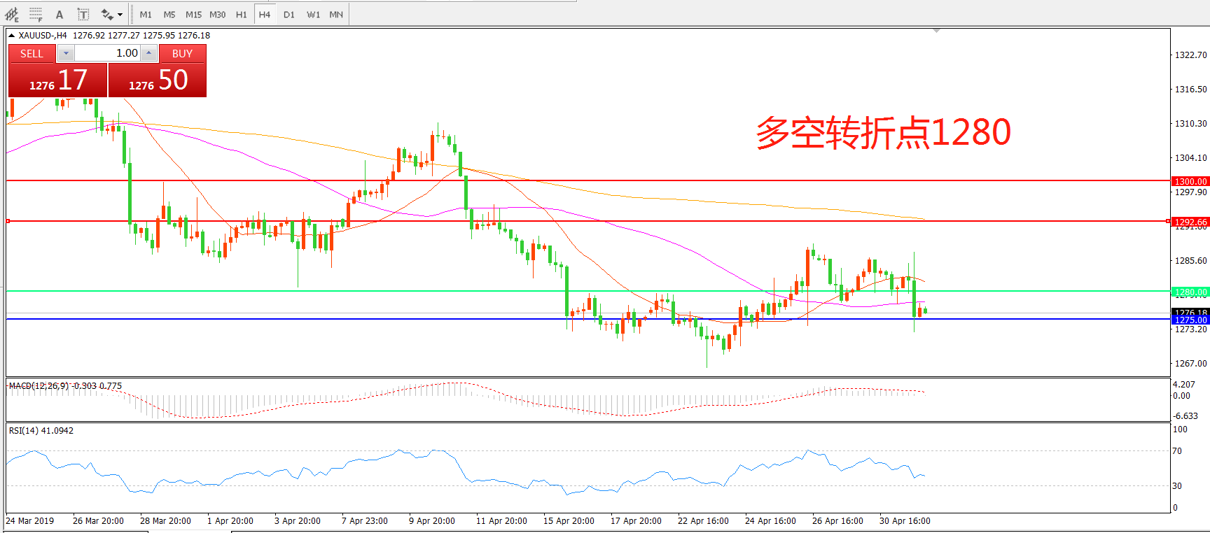 多空转折点:1280.00
