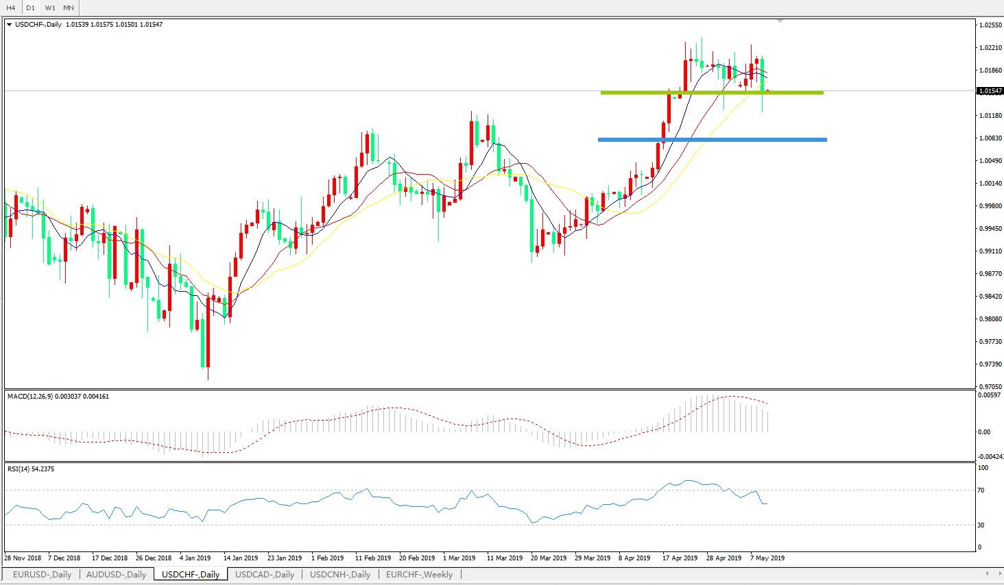 美元兑瑞郎USDCHF 日线图: