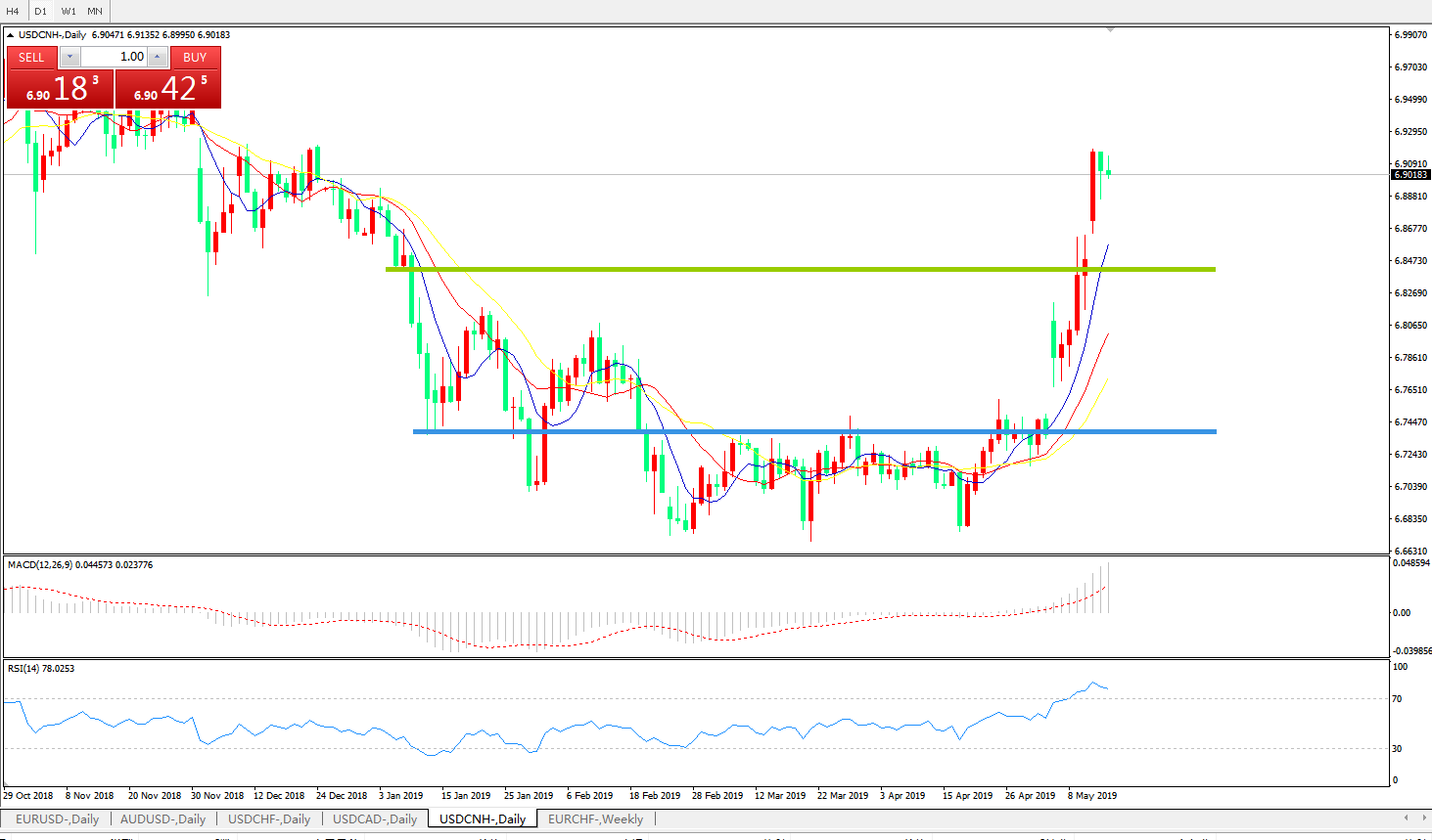 交易策略: 在6.8450之上,看涨,目标价位为6.9200,然后为6.9400。