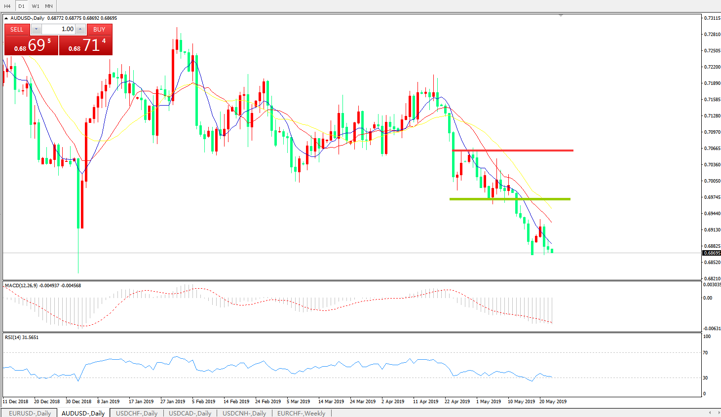 交易策略:在0.6960之下,看跌,目标价位为0.6900,然后为0.6830。