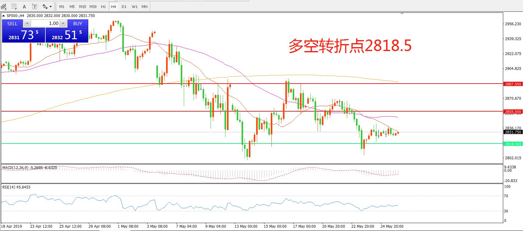多空转折点:2818.50