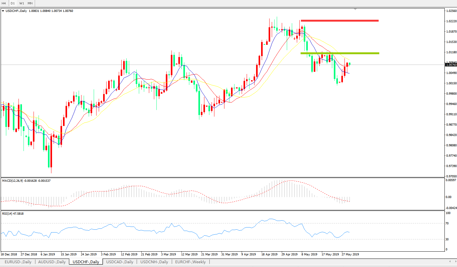 美元兑瑞郎USDCHF 日线图: