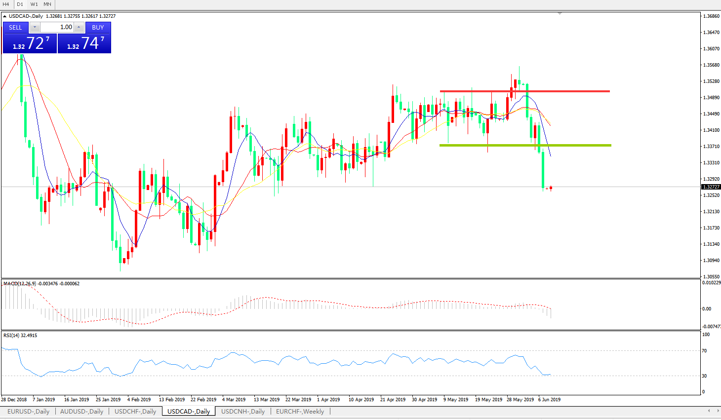 美元兑加元USDCAD 日线图: