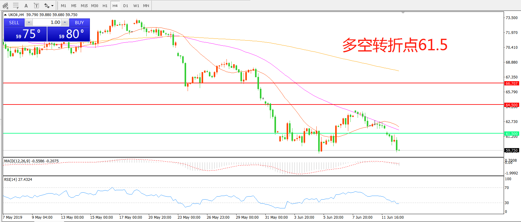 多空转折点:61.50