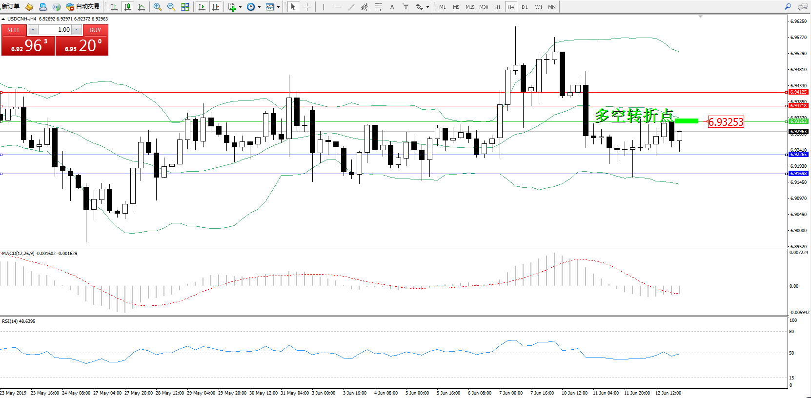 交易策略:6.93253下方看跌,目标6.922656.91698