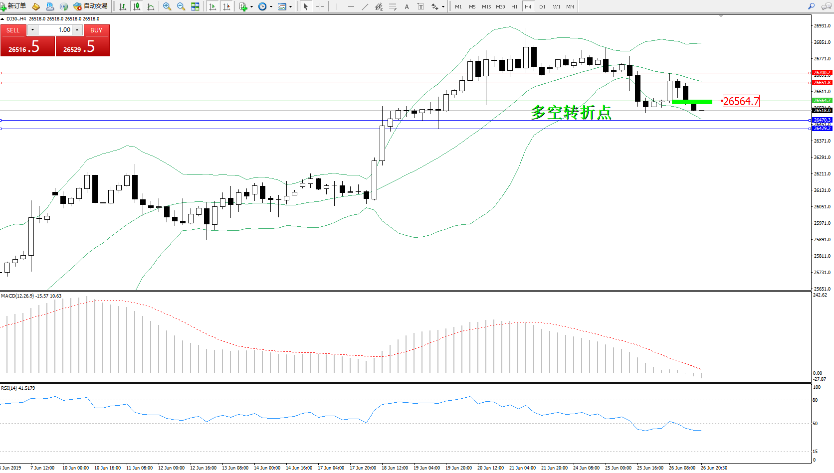 道琼斯指数DJ30—— 4小时K线图显示:
