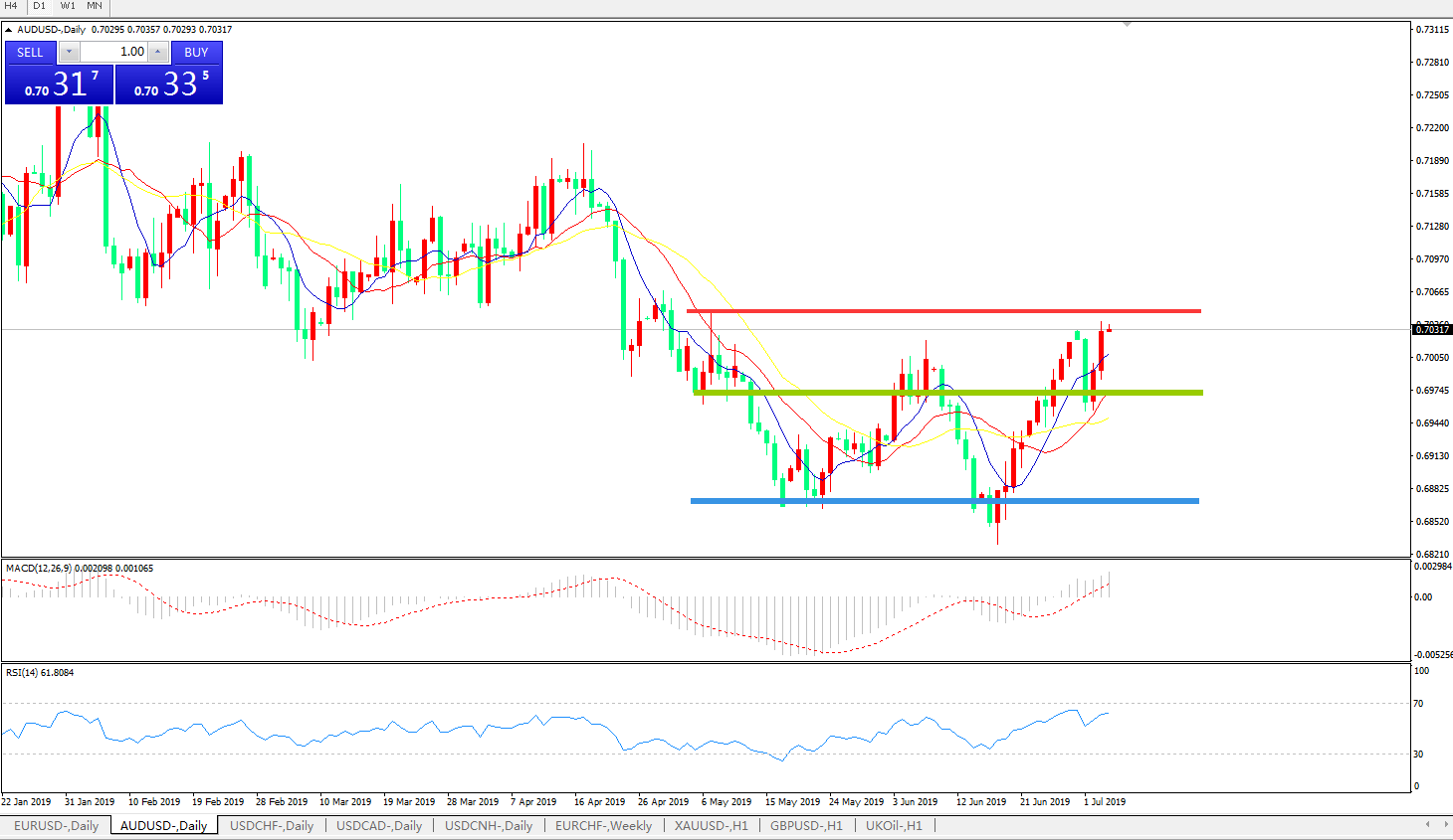 交易策略:0.6960上方看涨,目标0.7020、0.7100