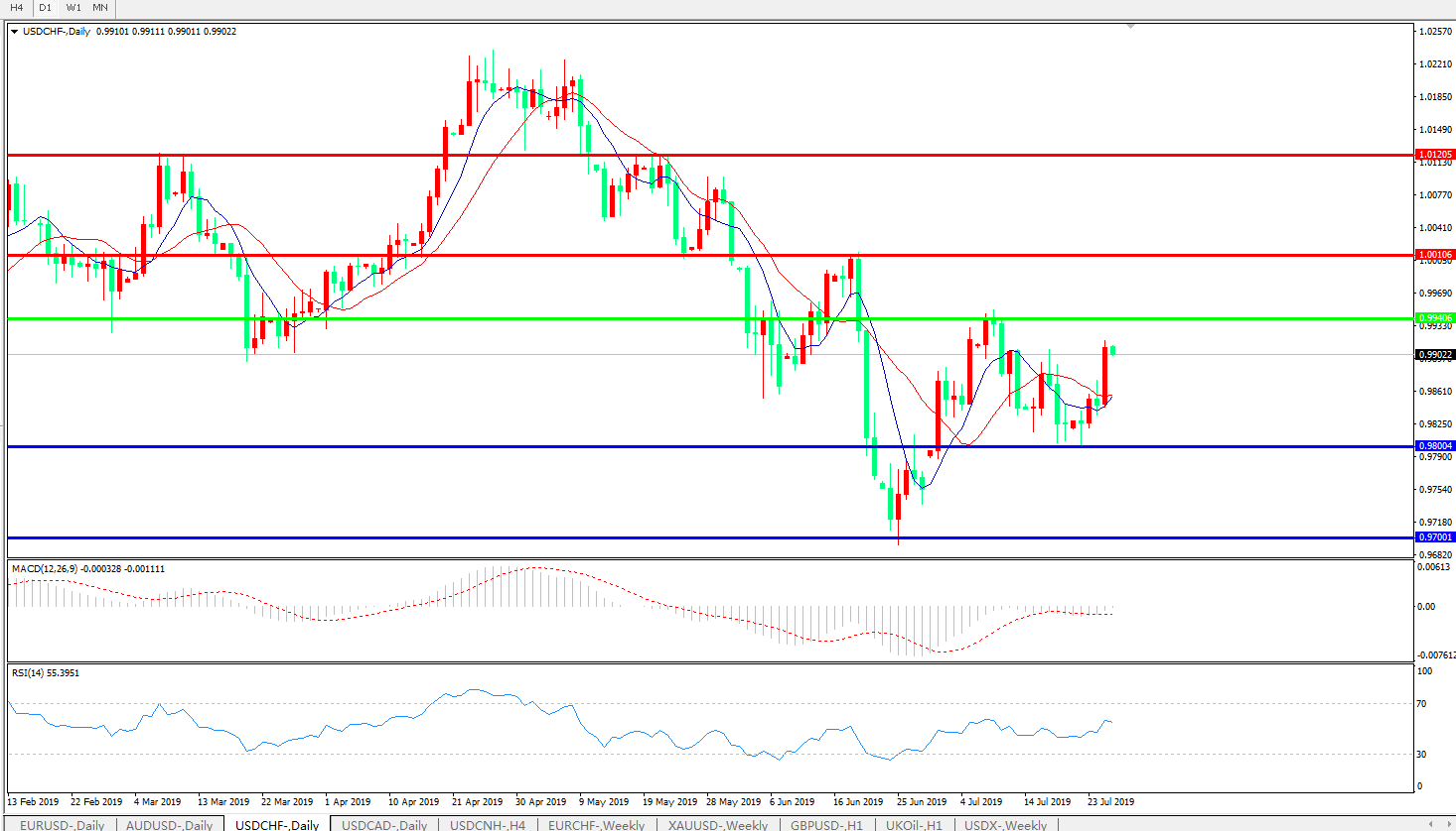 美元兑瑞郎USDCHF 日线图: