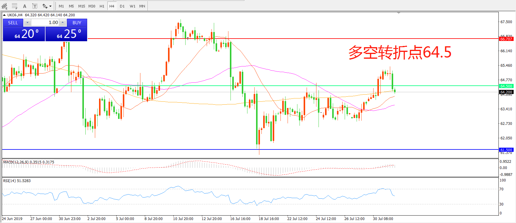 交易策略:在64.50之下看跌,目标61.50   57.50
