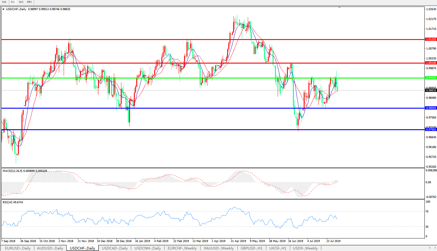 美元兑瑞郎USDCHF 日线图: