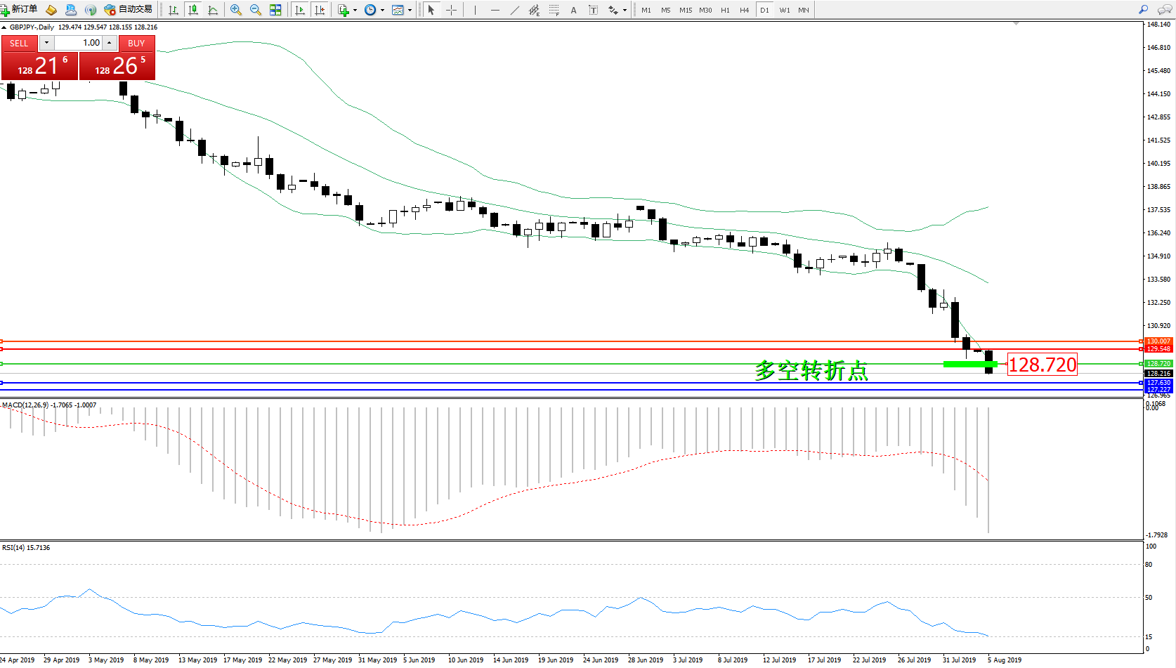交易策略:128.720下方看跌,目标127.630127.227