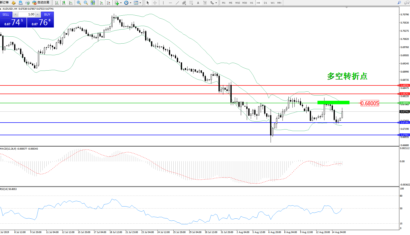 交易策略:0.68005下方看跌,目标0.67391、0.67002