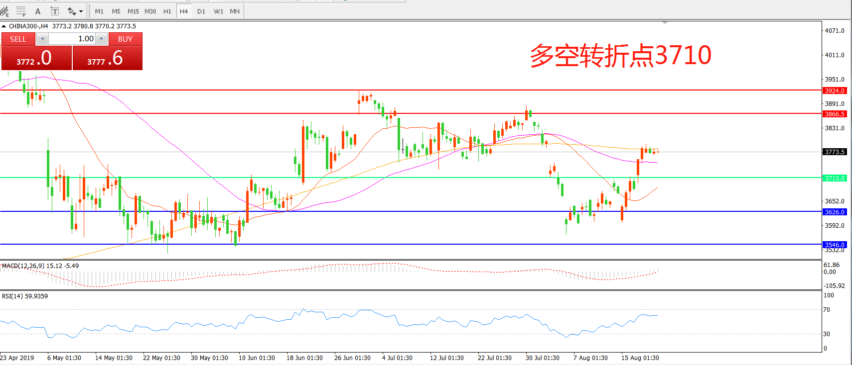 多空转折点:3710.00