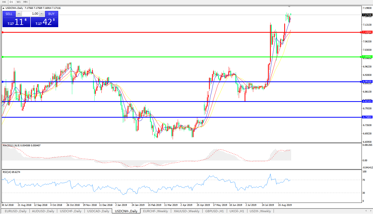 交易策略: 在7.0000之上,看涨,目标价位为7.1000,然后为7.2000。