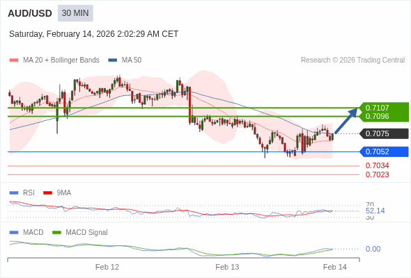 交易策略: 看涨,当 0.7052 为支撑位。