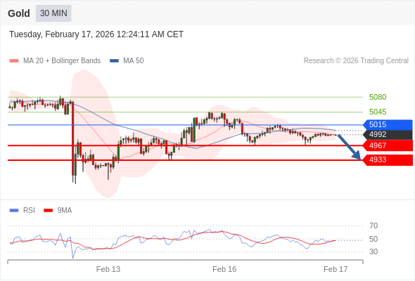 在 5015 之下,看跌,目标价位为 4967 ,然后为 4933 。