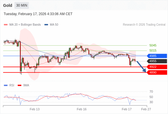 在 4985 之下,看跌,目标价位为 4922 ,然后为 4890 。