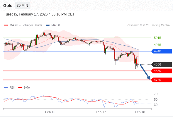 在 4940 之下,看跌,目标价位为 4830 ,然后为 4780 。