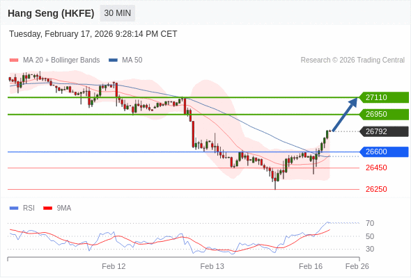 在 26600 之上,看涨,目标价位为 26950 ,然后为 27110 。