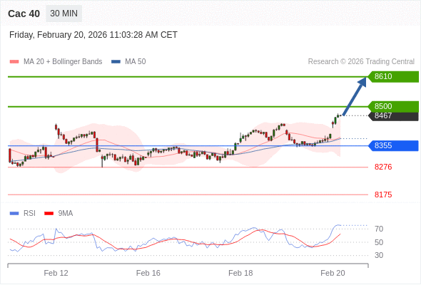 Cac 40 当日内: 新一轮上升。