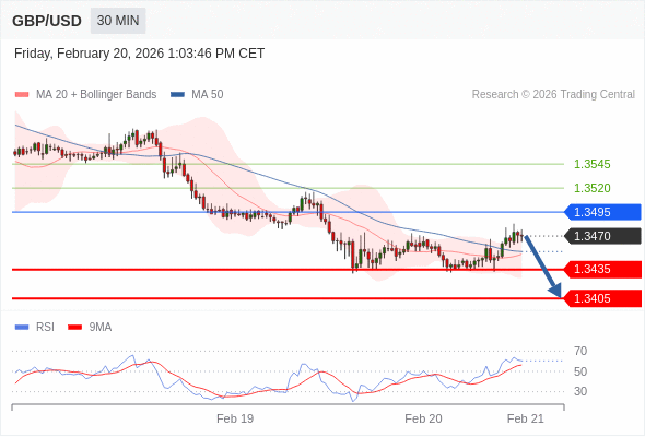 在 1.3495 之下,看跌,目标价位为 1.3435 ,然后为 1.3405 。