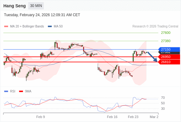 在 27150 之下,看跌,目标价位为 26950 ,然后为 26810 。