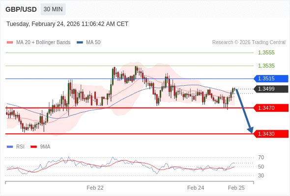 在 1.3515 之下,看跌,目标价位为 1.3470 ,然后为 1.3430 。