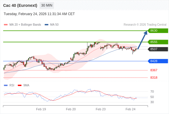 在 8428 之上,看涨,目标价位为 8555 ,然后为 8630 。