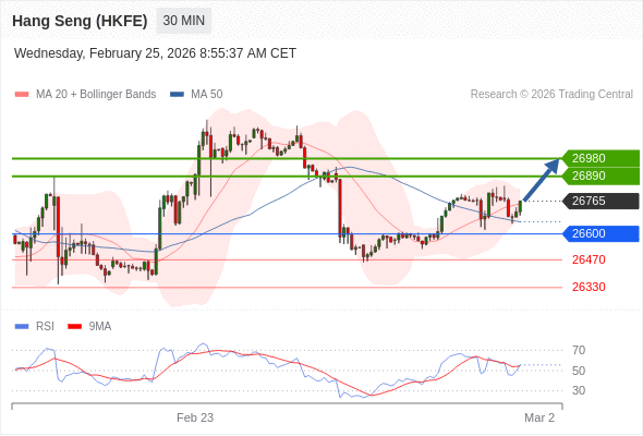在 26600 之上,看涨,目标价位为 26890 ,然后为 26980 。