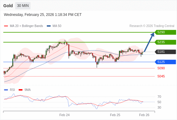 在 5125 之上,看涨,目标价位为 5235 ,然后为 5290 。