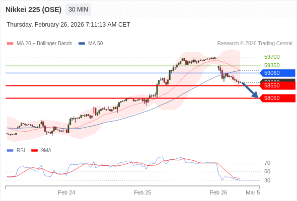 在 59060 之下,看跌,目标价位为 58550 ,然后为 58050 。
