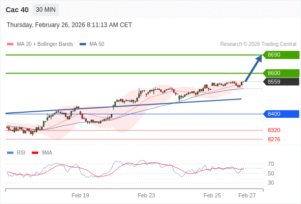 Cac 40 当日内: 上升趋势。