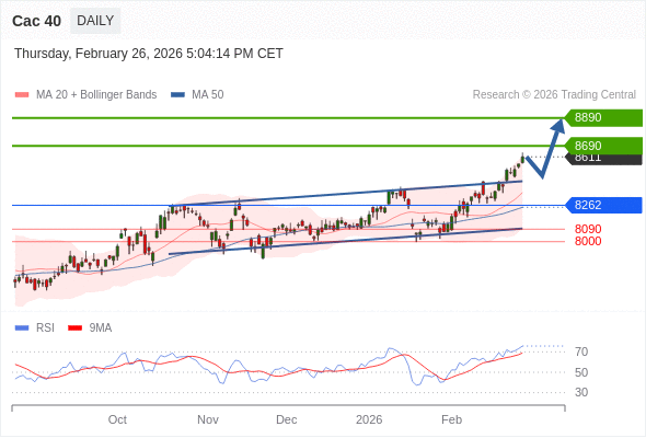 Cac 40 短线: 看涨。