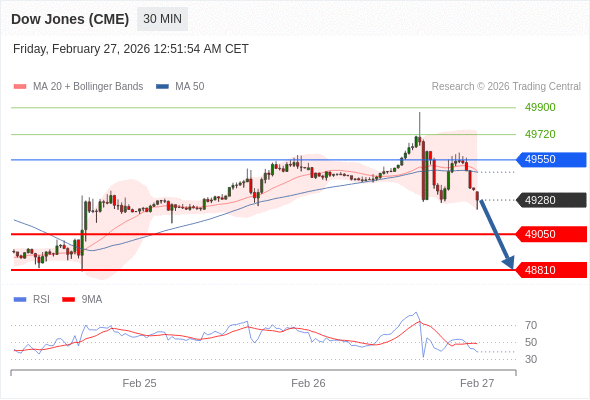 在 49550 之下,看跌,目标价位为 49050 ,然后为 48810 。