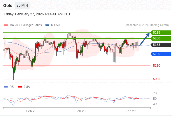 在 5160 之上,看涨,目标价位为 5200 ,然后为 5215 。