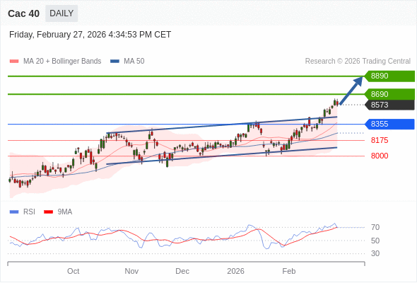 Cac 40 短线: 上升趋势。