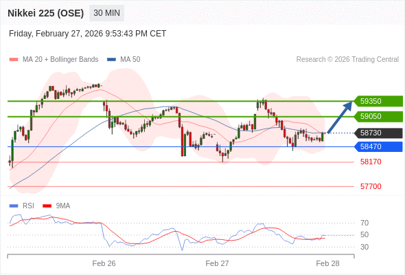 在 58470 之上,看涨,目标价位为 59050 ,然后为 59350 。
