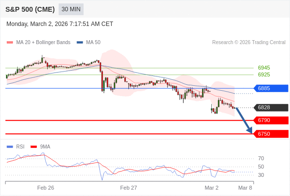 交易策略: 在 6885 之下,看跌,目标价位为 6790 ,然后为 6750 。