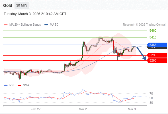 在 5365 之下,看跌,目标价位为 5295 ,然后为 5260 。