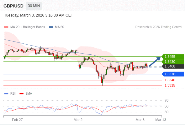 在 1.3370 之上,看涨,目标价位为 1.3430 ,然后为 1.3455 。