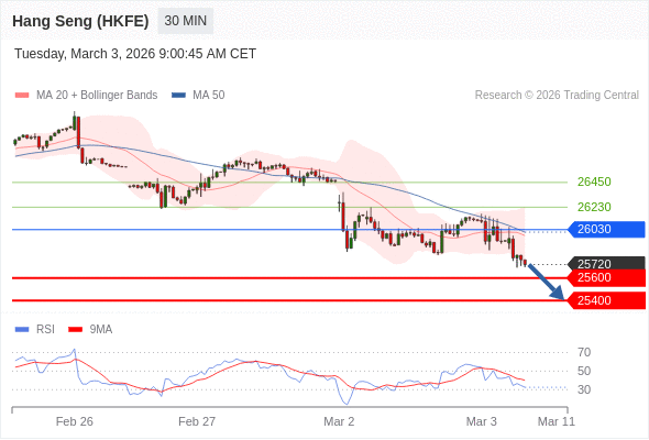 在 26030 之下,看跌,目标价位为 25600 ,然后为 25400 。
