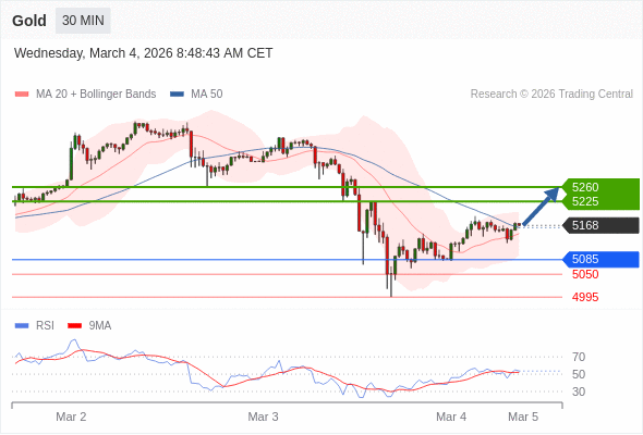 在 5085 之上,看涨,目标价位为 5225 ,然后为 5260 。
