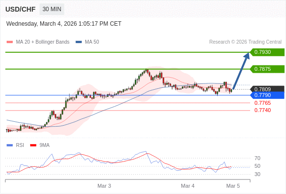 在 0.7790 之上,看涨,目标价位为 0.7875 ,然后为 0.7930 。