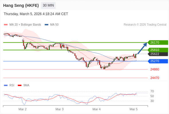 香港恒生指数期货 当日内: 朝25810运行。