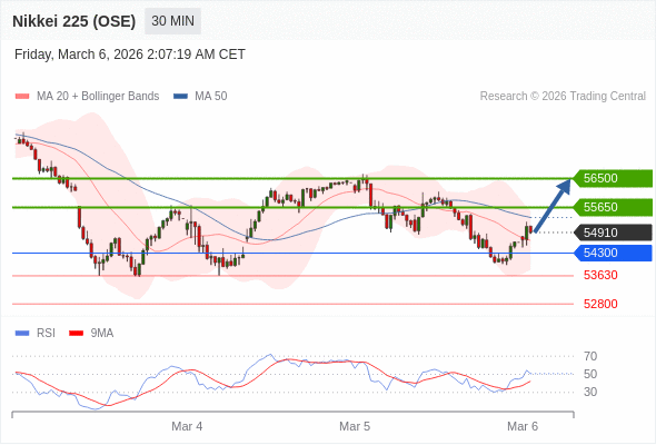 在 54300 之上,看涨,目标价位为 55650 ,然后为 56500 。