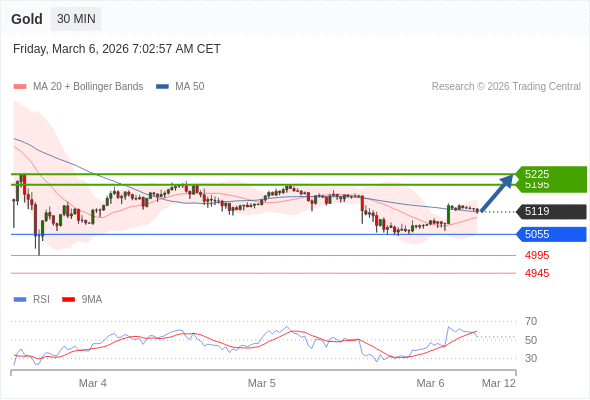 在 5055 之上,看涨,目标价位为 5195 ,然后为 5225 。